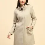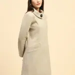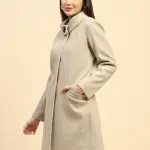 Beige Melange Solid Poly Blend Relaxed Fit Long Coat