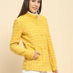 Mustard Poly Acrylic Checkered Regular Fit Coat