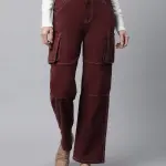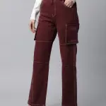 Cargo Style Straight Leg Wine Jeans