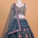 BLUE PRINTED SILK LEHENGA CHOLI