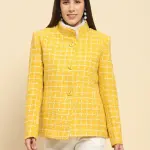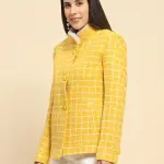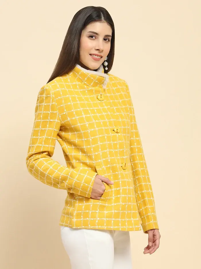 Mustard Poly Acrylic Checkered Regular Fit Coat