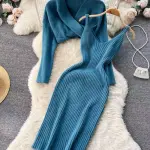 Fabric: Knitted Fabric Red & Blue solid sheath dress