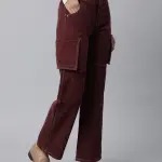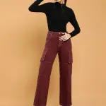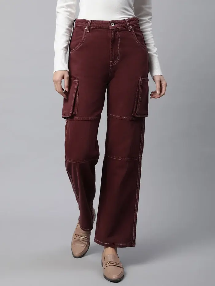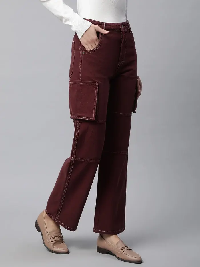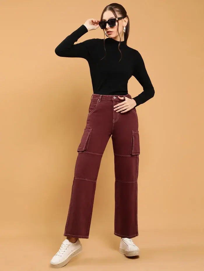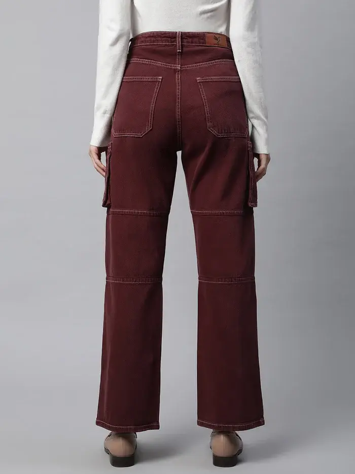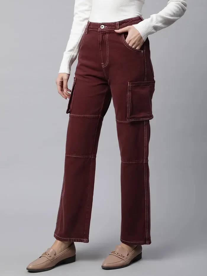 Cargo Style Straight Leg Wine Jeans